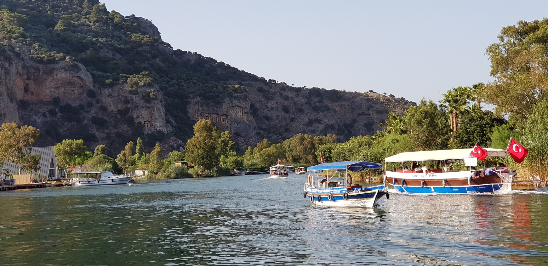 Dalyan kanalda tekneler beklemekte ,isterseniz özel kiralayabilir, isterseniz guruplar halinde kişi başı ücret verip turlara katılabilirsiniz.Kanal boyunca iztuzu plajı sahili,antik kaunos,kaya mezarlıkları,çamur banyolarına geziye katılabilirsiniz.